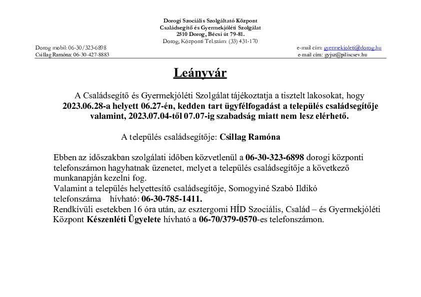 Leányvár adatbázisok, nyilvántartások leíró adatai