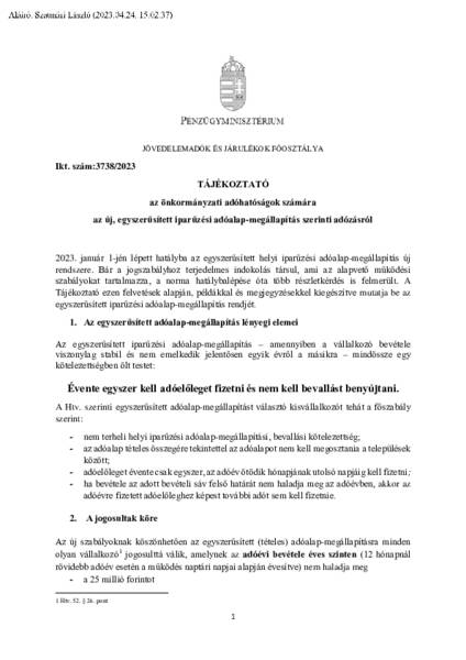 Tájékoztató HIPA egyszerűsített adómegállapítási módot választó adóalanyok részére
