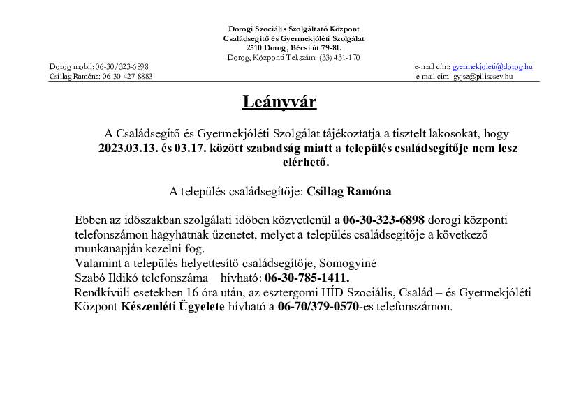 Közszolgáltatások Leányvár