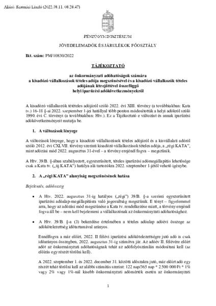 Tájékoztató a KATA adózási mód szabályinak változásával kapcsolatos teendőkről