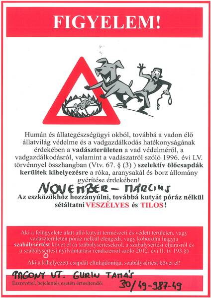 TÁJÉKOZTATÁS CSAPDÁK KIHELYEZÉSÉRŐL