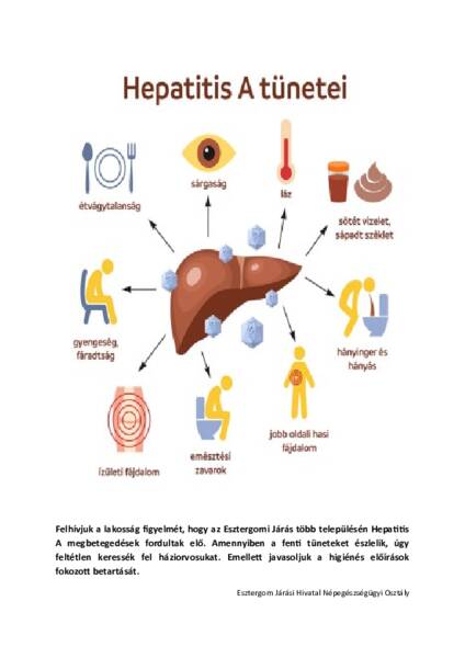Tekintettel arra, hogy a járás több településén Hepatitis A megbetegedések fordultak elő szeretnénk a lakosság figyelmét felhívni a betegség tüneteire a csatolmányban küldött plakáttal.